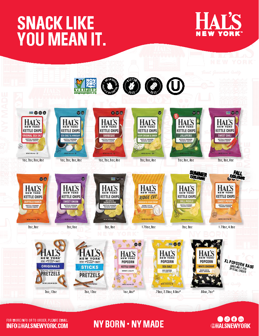 Today we pay tribute to Hal by bringing you great tasting Hal’s New York Kettle Cooked Potato Chips (or crackers) in the flavors that he loved.